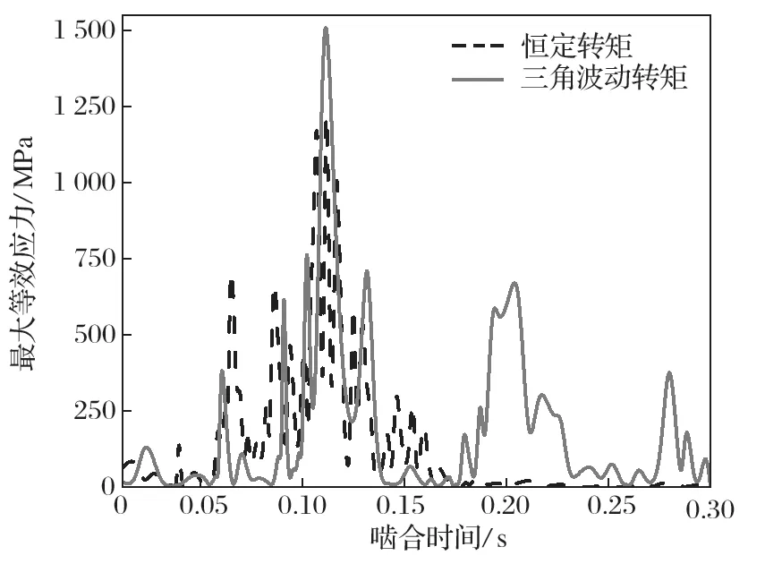 圖13 恒定轉(zhuǎn)矩與三角波動(dòng)轉(zhuǎn)矩zui大等效應(yīng)力的對(duì)比